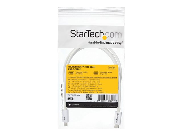 Câble Thunderbolt - 24 pin USB-C (M) pour 24 pin USB-C (M) - USB 3.1 Gen 2 / Thunderbolt 3 / DisplayPort 1.2 - 1 m - support 4K - blanc - pour P/N: CDP2HDUACP, CDP2HDUACPW