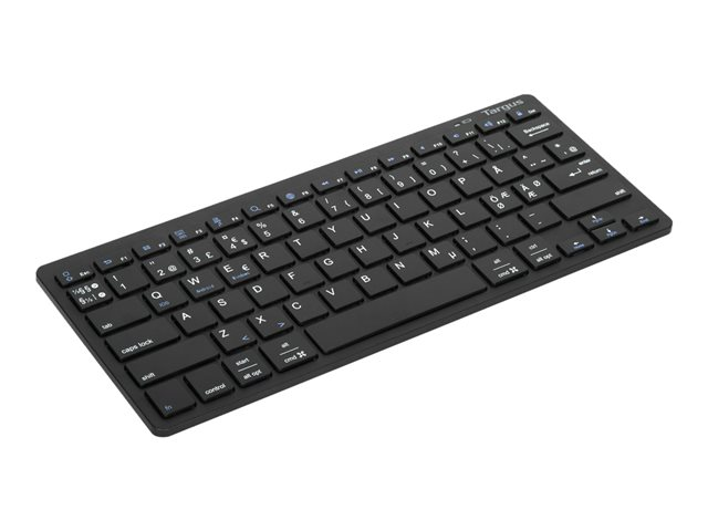 Description du produit Targus Multi-Platform - clavier - QWERTY - Nordique - noir - B2B Périphérique d'entrée Type de périphérique Clavier Interface Bluetooth 3.0 Technologie de connectivité Sans fil Localisation et disposition QWERTY Nordique Fonction de raccourcis clavier Interrupteur marche/arrêt Couleur Noir Dimensions (LxPxH) 28.6 cm x 12.1 cm x 2.24 cm Poids 280 g Programme de ventes par le fabricant Belkin B2B Garantie du fabricant 1 an de garantie -