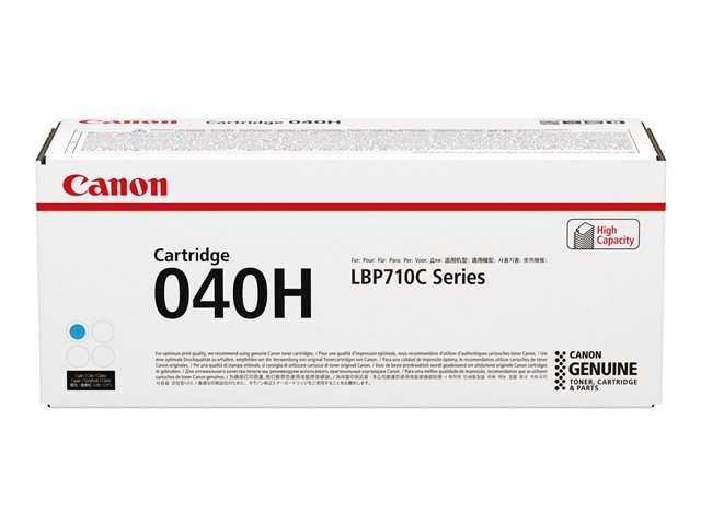 Description du produit Canon 040 H - haute capacité - cyan - original - cartouche de toner Type de Produit Cartouche de toner Technologie d'impression Laser Couleur d'impression Cyan Rendement de la cartouche Haute capacité Rendement Jusqu'à 10000 pages Compatible avec imageCLASS LBP712Cdn -