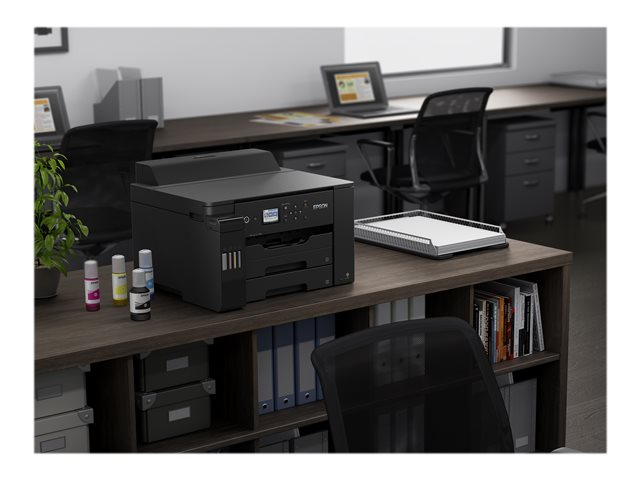 Outre le faible coût par page, cette imprimante EcoTank monofonction réalise facilement les travaux au format A3+. Les travaux A3+ peuvent être réalisés rapidement grâce aux vitesses d'impression élevées, aux deux bacs papier à chargement frontal de 250 feuilles et au chargeur de papier arrière de 50 feuilles. Imprimez selon vos préférences grâce à l'impression mobile, à la connexion Ethernet et à un écran couleur LCD de 6,1 cm doté de touches fixes.