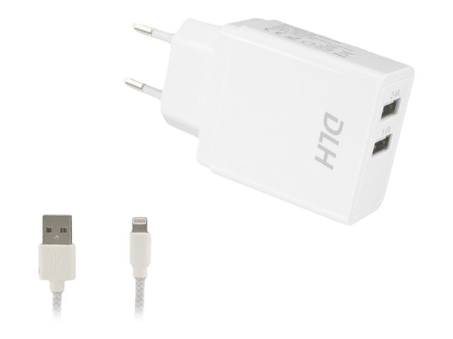 12 Watt - 2.4 A - 2 connecteurs de sortie (USB) - sur le câble : Lightning - blanc