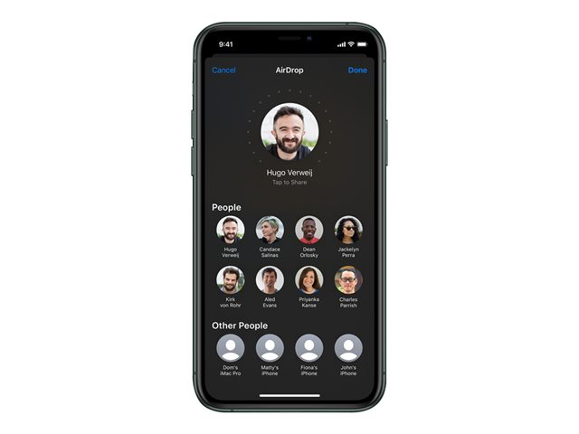 L'iPhone 11 Pro dispose de la technologie Ultra Wideband (UWB), ce qui en fait le premier smartphone avec une capacité de perception de l'espace. Conçue par Apple, la puce U1 exploite la technologie Ultra Wideband (UWB) pour localiser de façon précise d'autres appareils Apple équipés de la puce U1. Cela revient plus ou moins à doter l'iPhone d'un tout nouveau sens, ce qui ne manquera pas de lui ouvrir de nouvelles perspectives. Avec la puce U1 et iOS 13, lorsque vous pointez votre iPhone vers celui d'une autre personne, AirDrop donne la priorité à cet appareil pour faciliter l'échange de fichiers4. Et ce n'est qu'un début.