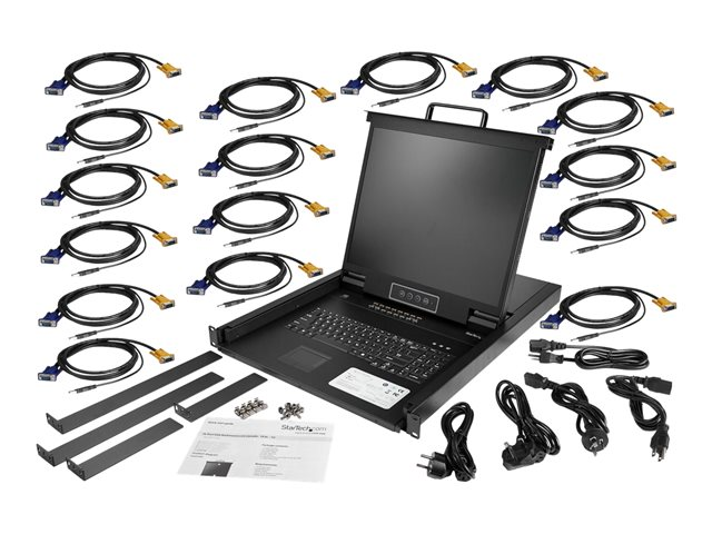 StarTech.com 16 Port Rackmount KVM Console with 6ft Cables, Integrated KVM Switch with 19" LCD Monitor, Fully Featured 1U LCD KVM Drawer- OSD KVM, Durable 50,000 MTBF, USB + VGA Support