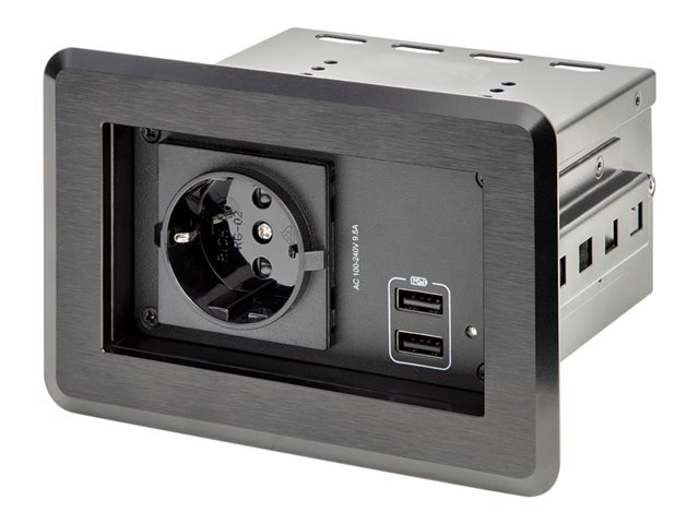 1 x CA et 2 x USB-A - Hub d'alimentation table - Coupe-circuit - CA 100-240 V - entrée : alimentation - connecteurs de sortie : 2 (2 x USB, 2 x alimentation) - noir