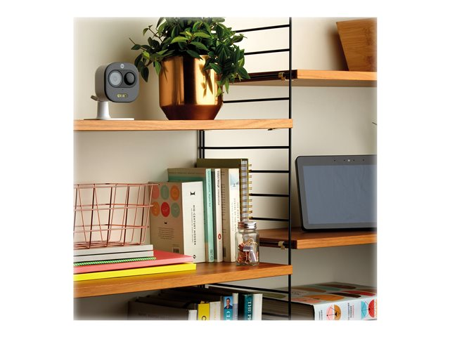 Discrète à l'intérieur et dissuasive à l'extérieur, la Caméra de porte d'entrée - Lumière et sirène est un système de sécurité résistant aux intempéries intégrant un projecteur lumineux et une sirène 80 dB. Visualisez votre maison de jour comme de nuit et personnalisez les paramètres de détection pour recevoir des alertes instantanées quand un mouvement est détecté.