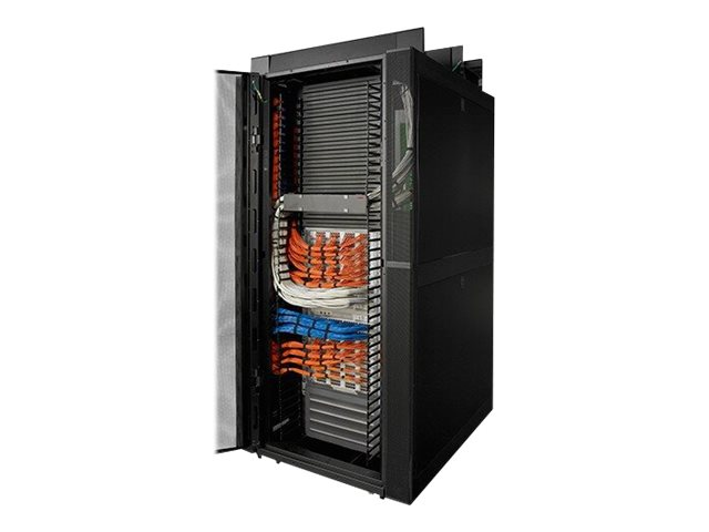 Armoires informatiques riches en fonctionnalités optimisées pour l'architecture en rangées InfraStruxure, la gestion des câbles, la distribution d'alimentation ainsi qu'une circulation d'air optimale.