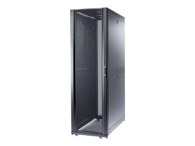 Armoires informatiques riches en fonctionnalités optimisées pour l'architecture en rangées InfraStruxure, la gestion des câbles, la distribution d'alimentation ainsi qu'une circulation d'air optimale.