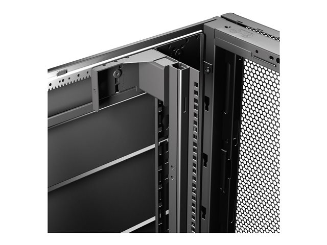 Armoires informatiques riches en fonctionnalités optimisées pour l'architecture en rangées InfraStruxure, la gestion des câbles, la distribution d'alimentation ainsi qu'une circulation d'air optimale.
