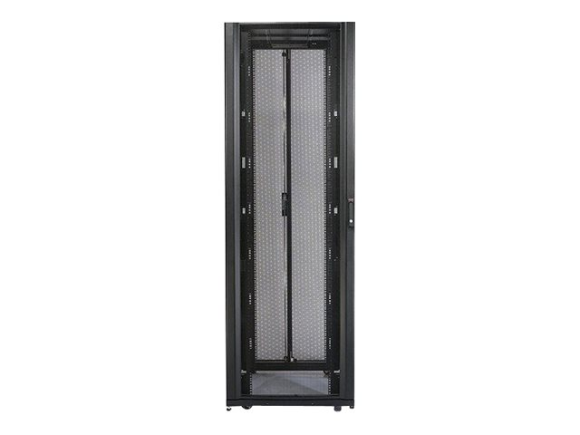 Armoires informatiques riches en fonctionnalités optimisées pour l'architecture en rangées InfraStruxure, la gestion des câbles, la distribution d'alimentation ainsi qu'une circulation d'air optimale.
