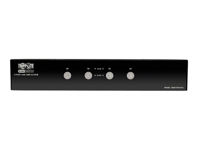 Description du produit Tripp Lite 4-Port DisplayPort KVM Switch w/Audio, Cables and USB 3.0 SuperSpeed Hub - commutateur écran-clavier-souris/audio/USB - 4 ports Type de périphérique Commutateur écran-clavier-souris/audio/USB - 4 ports Sous-type KVM Ports 4 x KVM / audio / USB Nombre d'utilisateurs KVM 1 utilisateur local Alimentation CA 120/230 V (50/60 Hz) Garantie du fabricant Garantie de 3 ans -